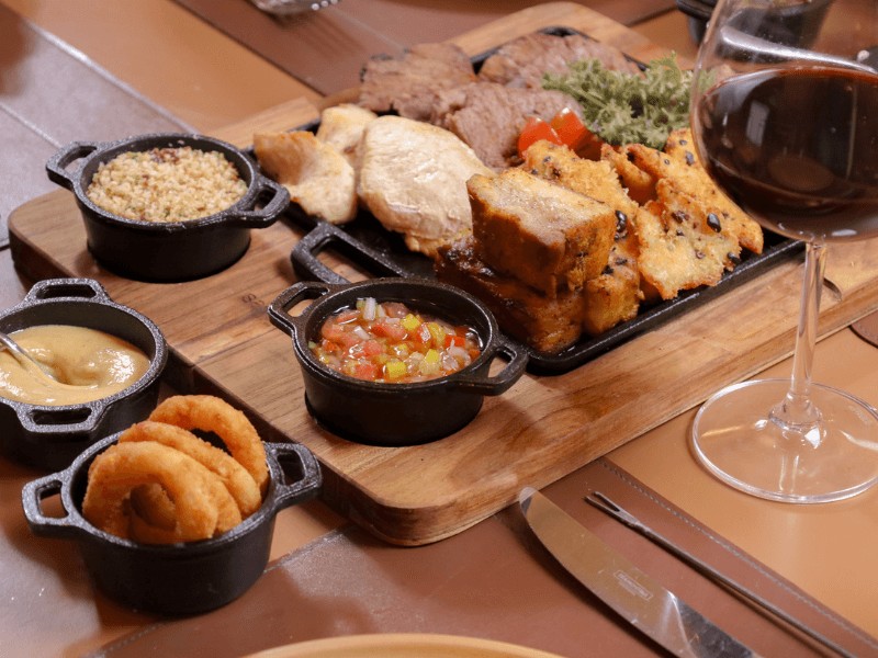 - Fondue de Queijo: O jantar começa com o tradicional fondue de queijo, que aqui ganha acompanhamentos classicos como batatas, pães, verduras e polentas.